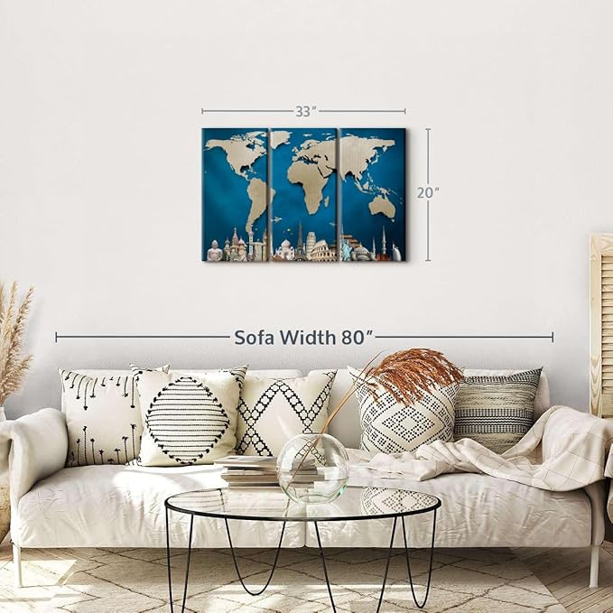 - Easy Setup- You can install our 3-panel world map canvas and wall art map right out of the box because it has a pre-assembled sawtooth hanger. Our ready-to-hang world map art and wall decor can elevate the visual interest of your wall in an instant.