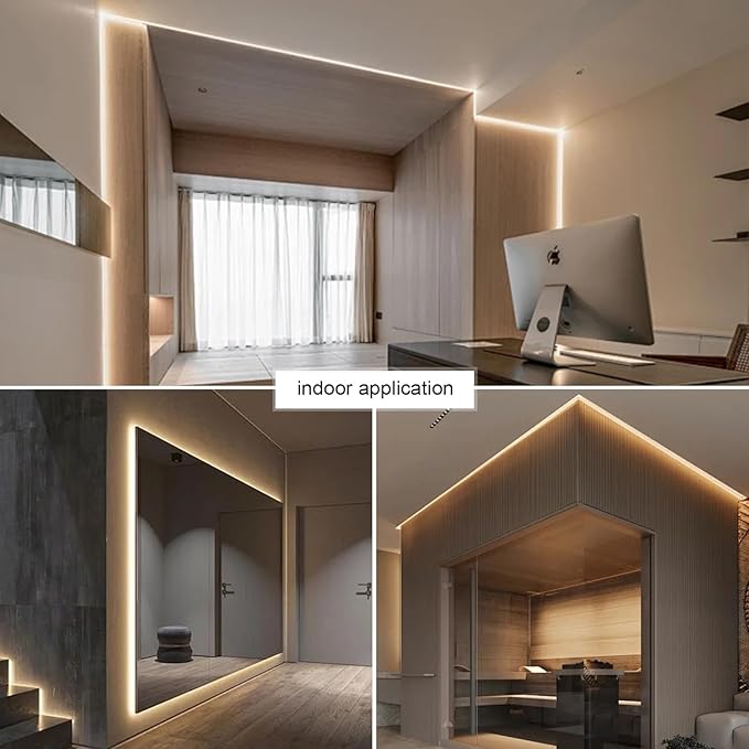 - ⭐【IP65 Waterproof】: This super bright even 2835 led strip light ,The waterproof grade is IP65, which can be used outdoors and indoors,However, when used outdoors, both ends of the lamp belt need to be sealed with glass glue or hot-melt glue to prevent leakage.