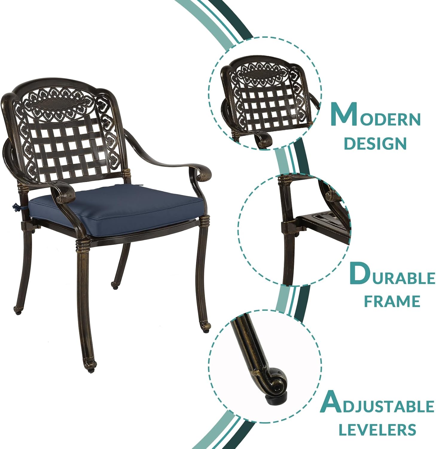 MEETWARM 3 Piece Patio Bistro Set, Outdoor All-Weather Cast Aluminum Dining Furniture Set Includes 2 Chairs with Cushions and a 35.4” Round Table with Umbrella Hole for Garden Deck, Navy Blue