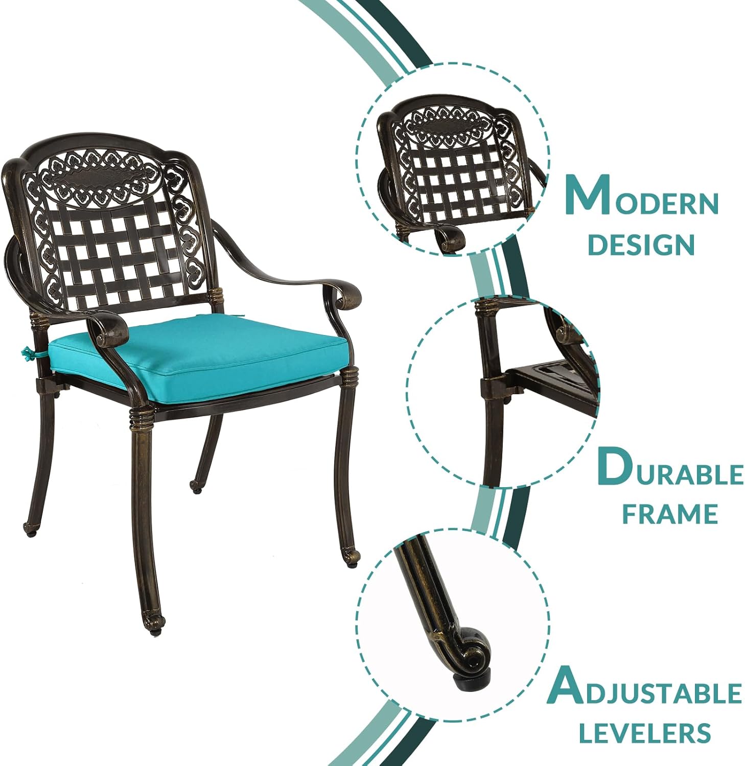 - 【Weather Resistant】 - At MEETWARM, we bring you the best outdoor furniture available. Our table and chairs are made of sturdy and durable cast aluminum with rust-resistant powder coated surface for years of outside use. If you use this set by the pool, its all-weather quality helps prevent water damage caused by wet swimsuits and splashing