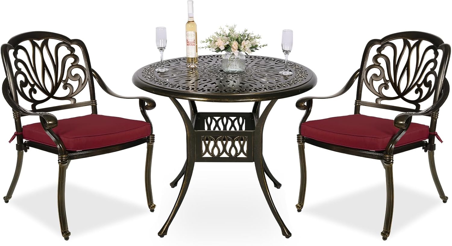 - ALL-WEATHER, RUST-RESISTANT DESIGN: This beautiful 3-piece patio dining set is made to last with all-weather, rust-resistant cast aluminum to endure any weather