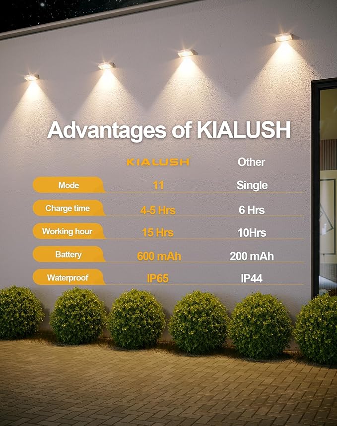 - 【600mAh Battery & Long Working Time】We equipped the outdoor solar wall lights with a built-in 600 mAh battery, which supports each outdoor solar light to light up continuously for more than 15 hours, and can guarantee the battery durability to meet the daily use of most families.
