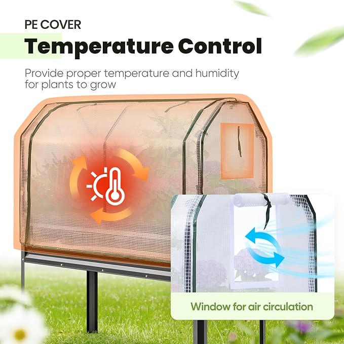 - 【Extending the Growing Season】Raised garden bed with cover allows plants to thrive during the winter and spring. Equipped with zippered doors for easy access, you can tend to your plants with great convenience. Featuring 2 mesh windows, they ensure proper air circulation while also protecting your plants from birds and other small animals.