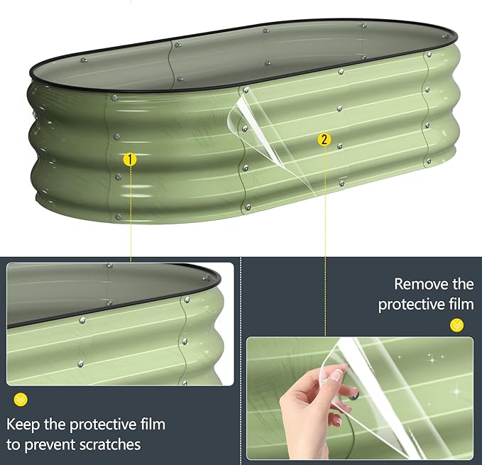 - Double Thickness Super Stability: The thickness of the planter box is 0.6 mm, and the thickest overlap of galvanized sheets can reach 1.2 mm.Adding screw fastening edge at the interface. Oval shape that won't deform allows it to hold a large amount of soil.