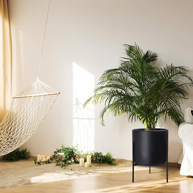 - Simple and Elegant Design: Cylinder-shaped pot is simple and elegant. Black color matches well with any plant and decor. Sleek and minimalist stand adds sophistication to your space.