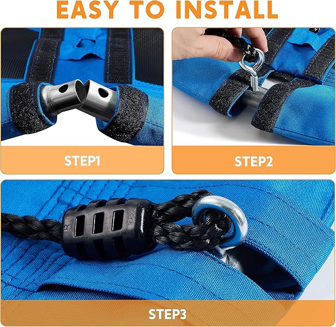 - SWING KIT INCLUDES.A main wrench, 2 carabiners, 2 additional straps designed to hang the tree swings for kids on higher tree branches, and the assembly instructions are included in this 40 inches saucer tree swing for kids.