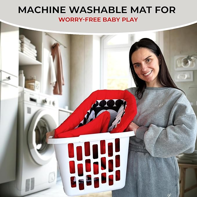 - HIGH CONTRAST VISUALS: newborn playmat is thoughtfully designed for timmy time activity; The black, white. and red contrast baby toys chosen to stimulate developing vision