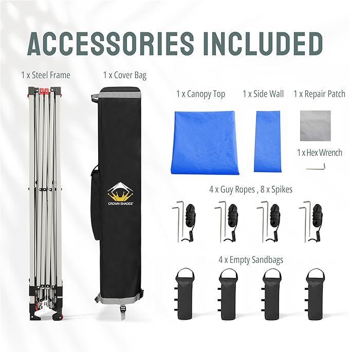 CROWN SHADES 12x12 Pop Up Canopy Tent Instant Commercial with 150D Silver Coated Fabric Including 1 Removable Sidewall, 4 Ropes, 8 Stakes, Weight Bags, STO 'N Go Bag, Blue