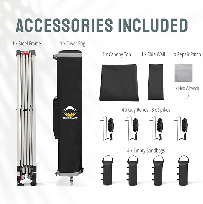 CROWN SHADES 12x12 Pop Up Canopy Tent Instant Commercial with 150D Silver Coated Fabric Including 1 Removable Sidewall, 4 Ropes, 8 Stakes, Weight Bags, STO 'N Go Bag, Black