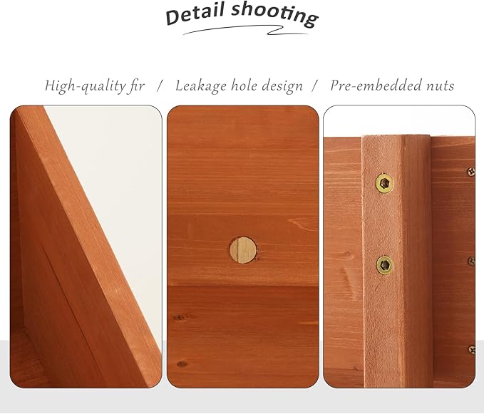 - 【STABLE AND DURABLE】: This raised garden bed is made of fir wood, which is stable in nature and is an excellent material for outdoor gardening furniture with a long service life