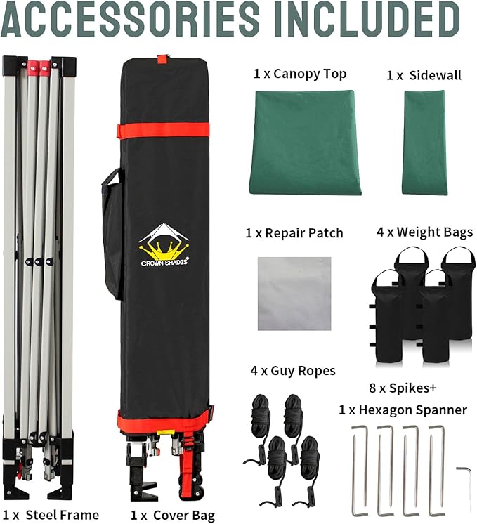CROWN SHADES 10x10 Pop Up Canopy with 1 Side Wall - Beach Tent with One Push Setup - Outdoor Sun Shade for Events, Parties, Camping - Gazebo with STO-N-Go Cover Bag (Forest Green)
