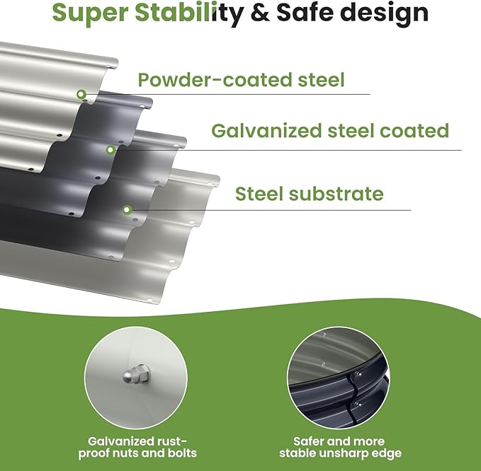 - Safety design: We offer a rubble seal to protected top edge of garden from being sharp. Environmentally friendly paint is used, which does not pollute the soil and provides a healthy growth environment for plants.