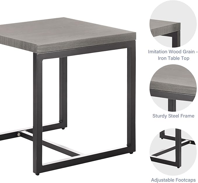 Patio Tables Outdoor Coffee Table - Steel Side Tables End Table for Proch Deck Balcony Garden Squre Grey Tabletop