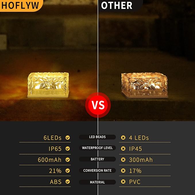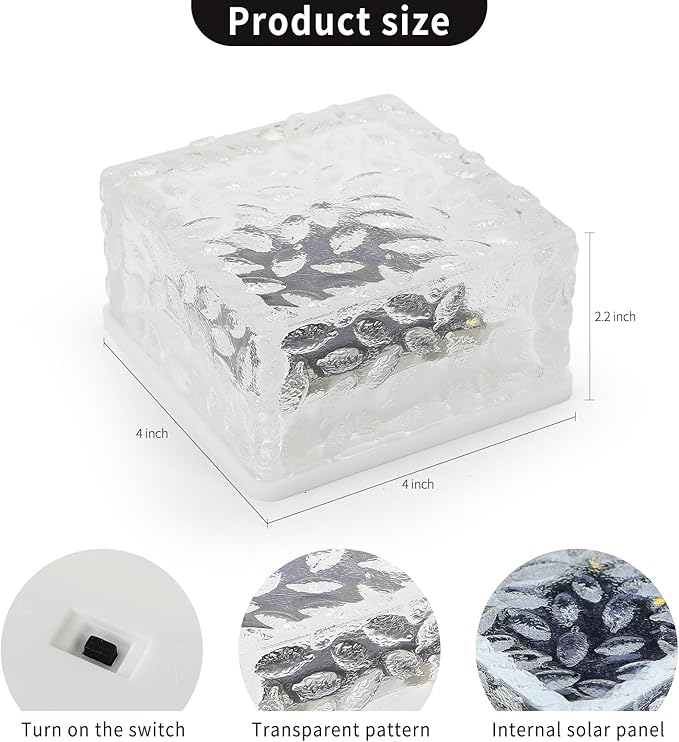 - Easy to use Solar Brick Light: Our Solar Ice Cube Lights Outdoor Waterproof are easy to install without wiring, and the automatic light sensor will automatically turn them on and off. Please remember to turn on the switch to "ON" after receiving this LED landscape light to make sure it is It can be charged under the sun and light up your yard when night falls. With an IP65 waterproof rating, it can withstand any harsh weather conditions.