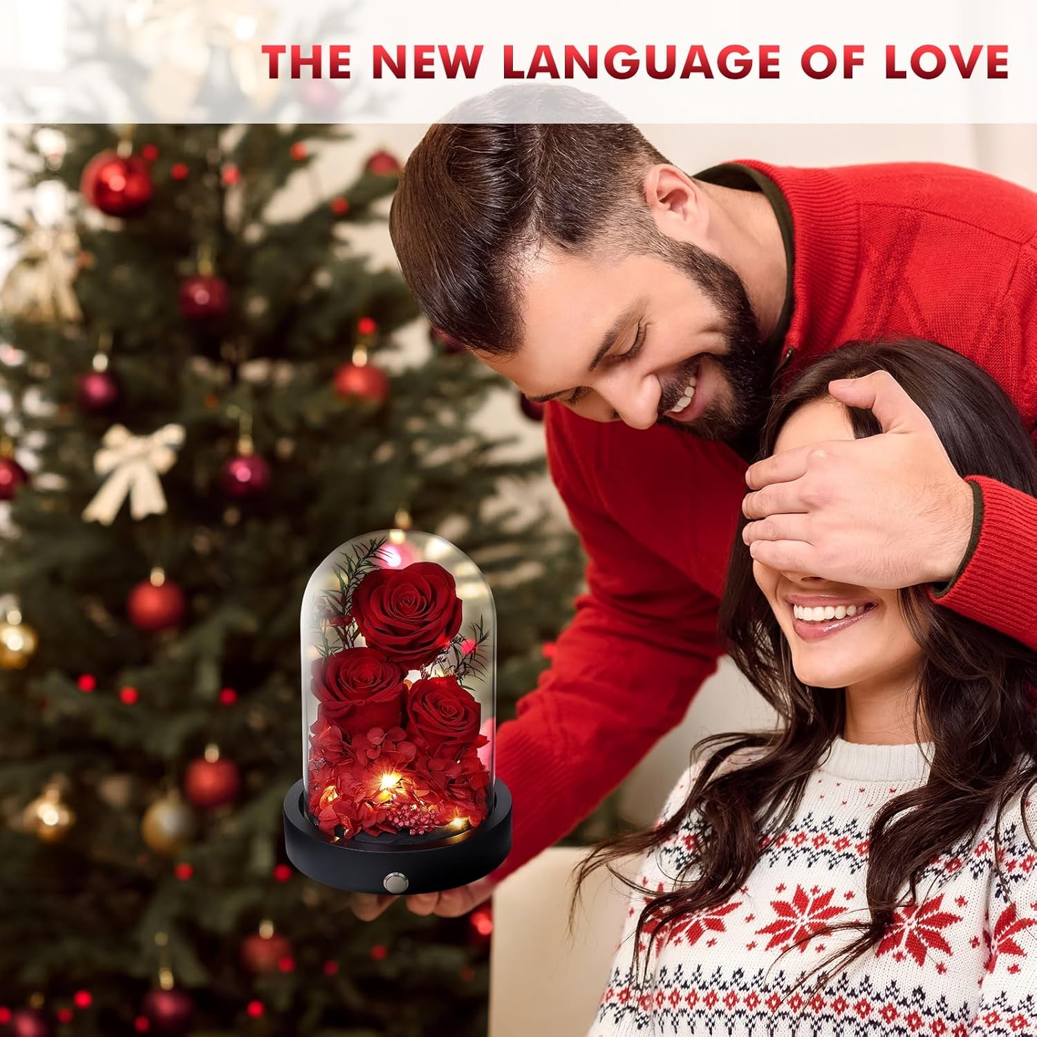 Flowers Forever for Delivery, Preserved Rose in Glass Dome with LED Gifts for Her, Forever Flower for Women on Valentines Day, Mothers Day, Anniverysary, Birthday, Red