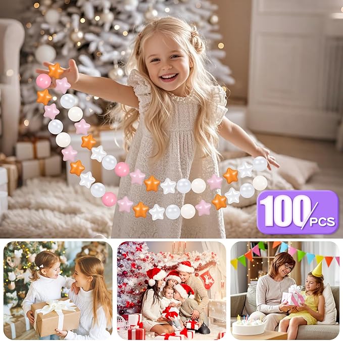- Color : Creamy Pink+gold Star Balls