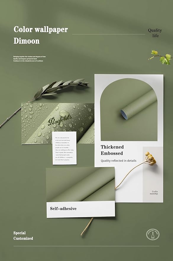 Dimoon 110''x17.7'' Green Peel and Stick Wallpaper Contact Paper Modern Self Adhesive Wall Paper Removable Renter Friendly Textured Solid Color Shelf Cabinet Vinyl Roll (110''x17.7'',Olive Green)