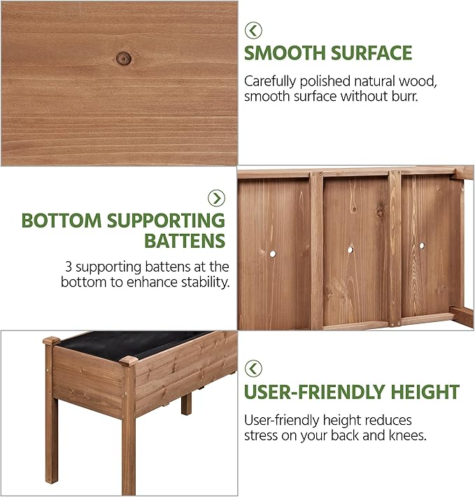 - STABLE RECTANGLE STRUCTURE -- Featured with a rectangular look, this elevated planting box has four side plates tightly inserted into grooves on the legs. Wooden covers and screws lock them in place. Wooden legs and three additional battens below support the entire bed steadily