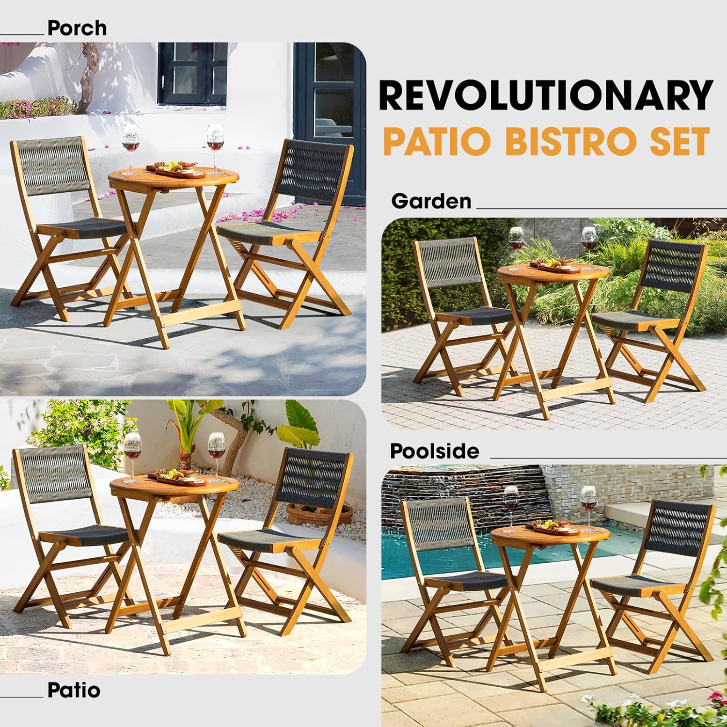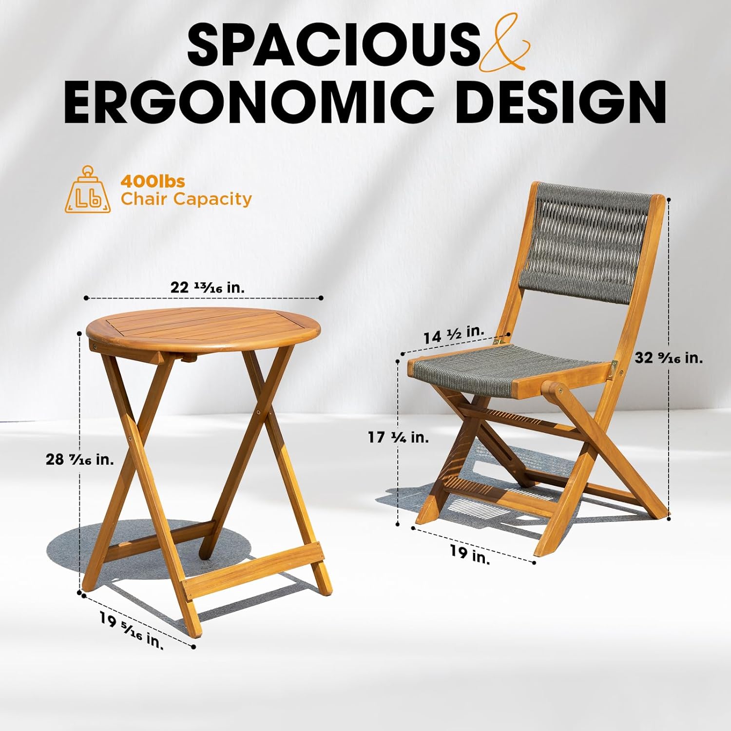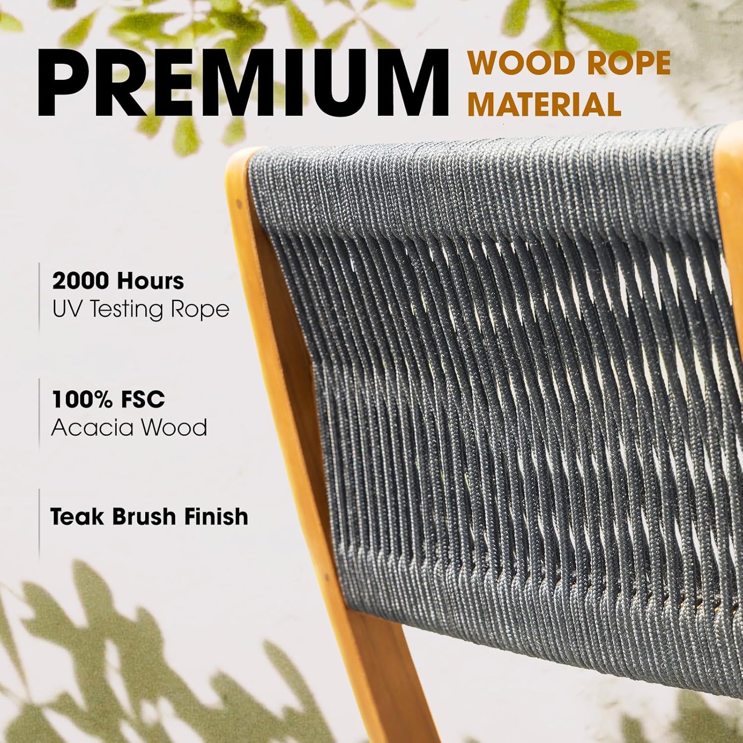 - 『HEAVY DUTY OUTDOOR BISTRO SET』: Crafted from quality FSC-certified Acacia Wood and strong polypropylene rope, our wooden bistro set is built to last; Reinforced by metal hardware, our chair ensures a sturdy structure & a high capacity of up to 400 pounds