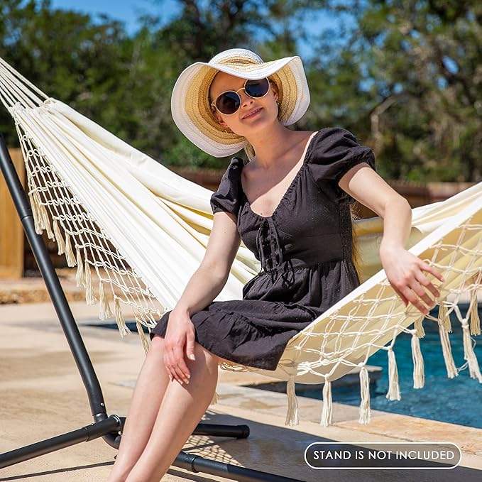 SUNCREAT Portable Camping Hammock for Outside, Heavy Duty 2 Person Hammock Bed for Tree, Beige with Tassels