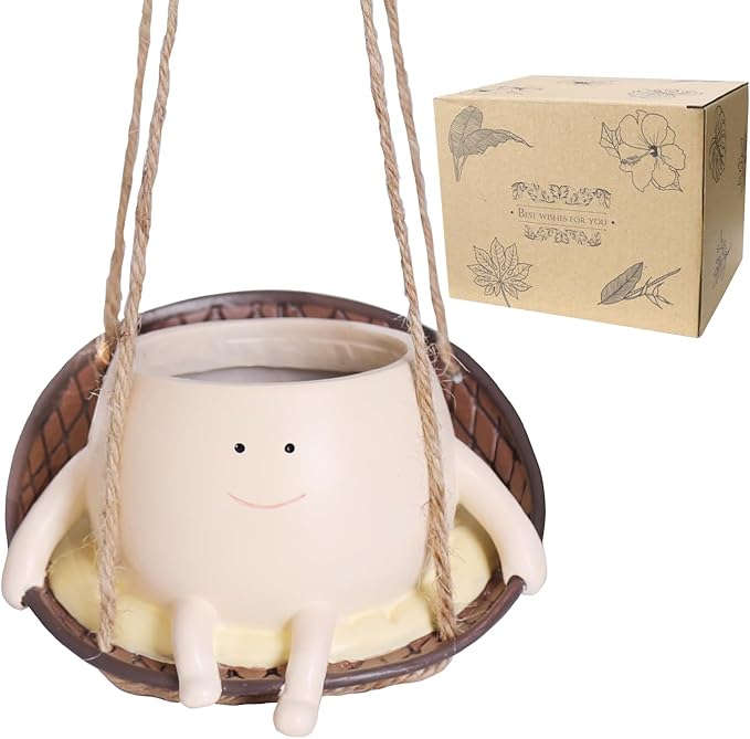 - Resin flower planter: This swing hanging face planter is a captivating decorative item, with its distinctive face-shaped design and smiling expression that adds a touch of fun and charm to your room and garden.