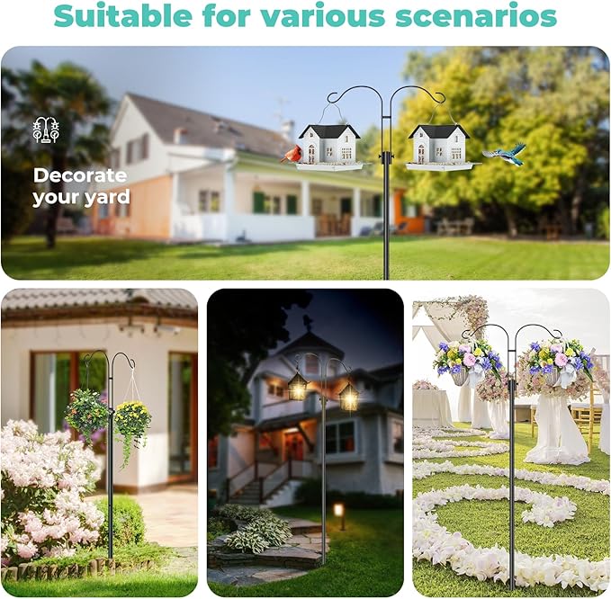 - VERSATILE DECORATION: Our shepherd's hook is ideal for hanging flower pots, bird feeders, lanterns, and wind chimes, enhancing your garden or backyard's ambiance. It's also suitable for indoor use, like hanging pictures, keys, and other small items