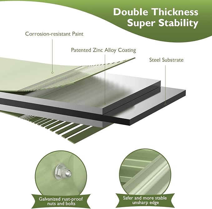 - Attractive Elevated design: Outdoor elevated garden beds with legs are more durable than wooden garden beds. Lift-up design allows you to take care of your plants without bending down. The 4 corners are protected with pads, which Protects you from scratches during installation and planting. The garden box brings great convenience to our planting life, also make your yard a delightful photo spot