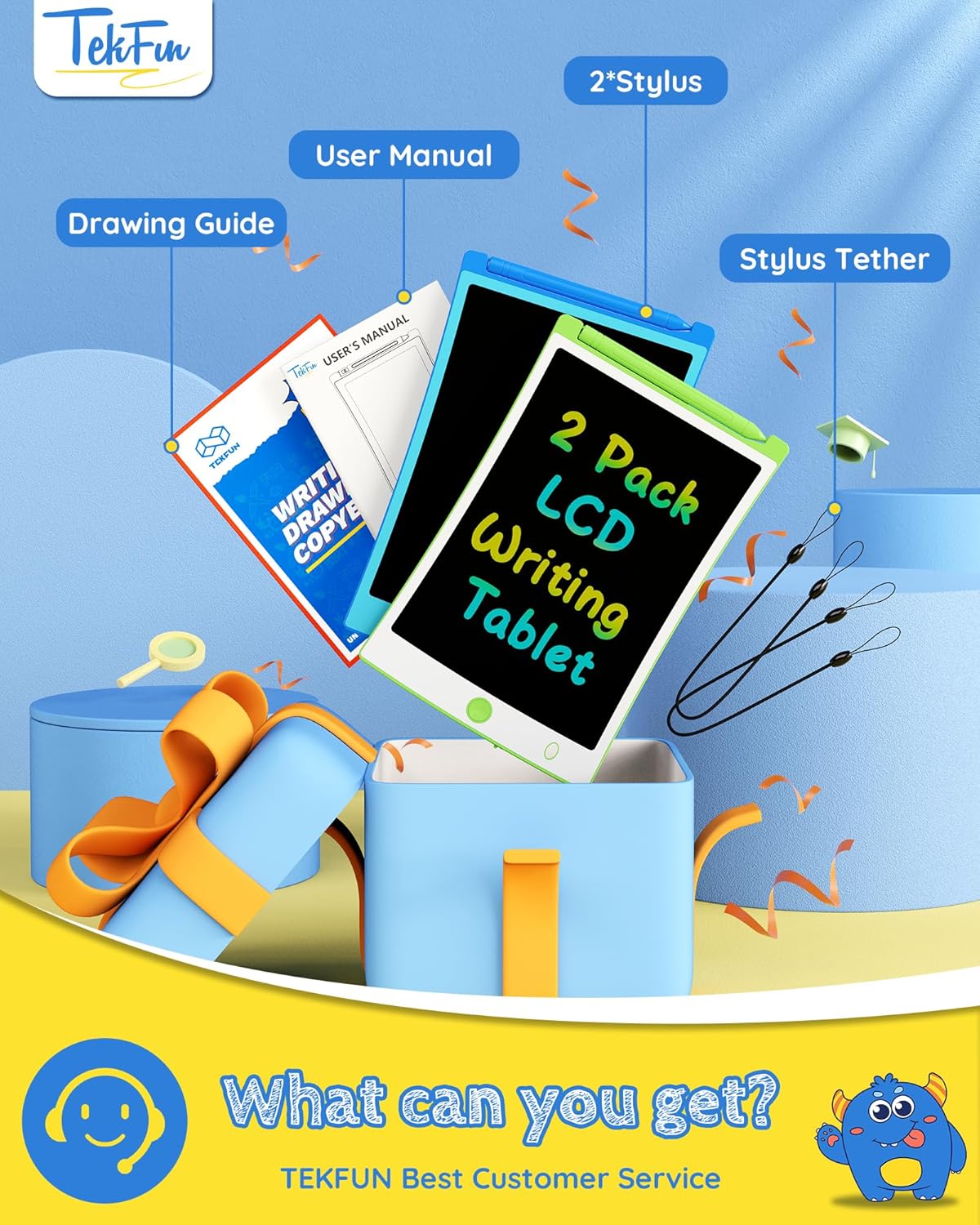 - Eye-Friendly: Say goodbye to blue light and glare with TEKFUN's LCD screen. Your child can draw for hours without straining their eyes, making it a great electronic alternative for preventing visual impairment.