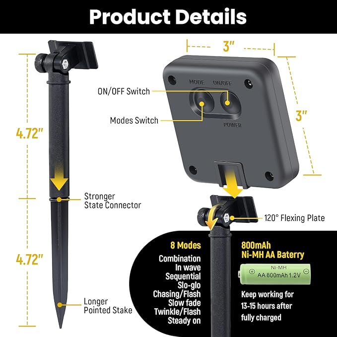 - 【Versatile Lighting Modes】 Cater to every mood or event with 8 versatile lighting modes. From steady warm white for romantic outdoor settings to flashing lights for festive solar Christmas lights outdoor during Christmas and holiday decor, our memory function of the Christmas tree lights ensures your favorite settings are saved, adding convenience and charm to your outdoor ambiance.