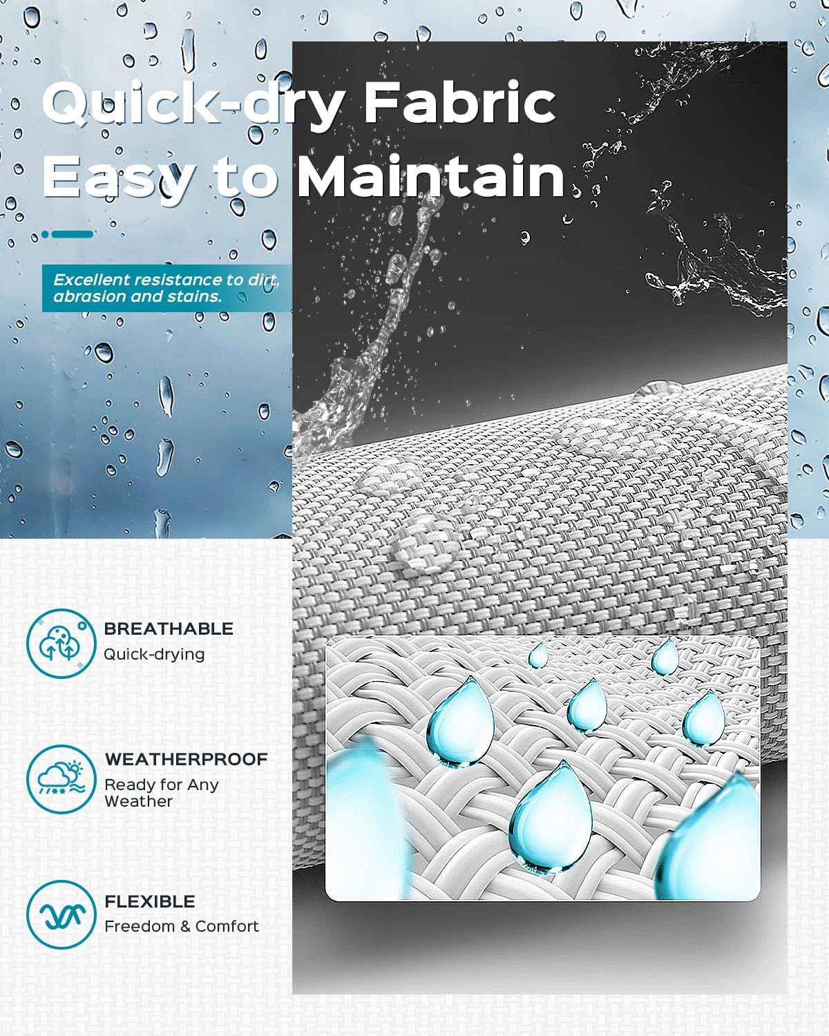 - 【EASY MAINTENANCE】This chaise lounge boasts a robust aluminum frame and premium Texitilene fabric. Durable and weather-resistant, the lightweight Texitilene material is breathable and quick-drying, ensuring air circulation and ventilation on hot days for optimal comfort
