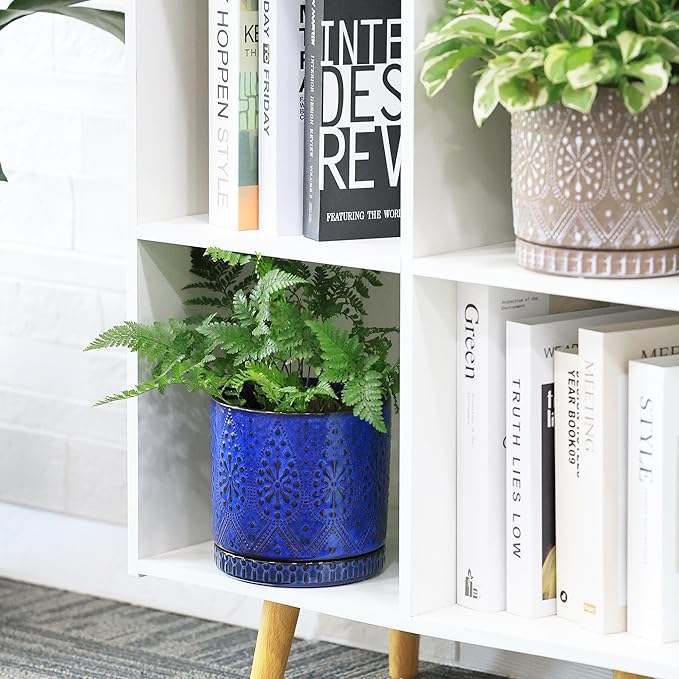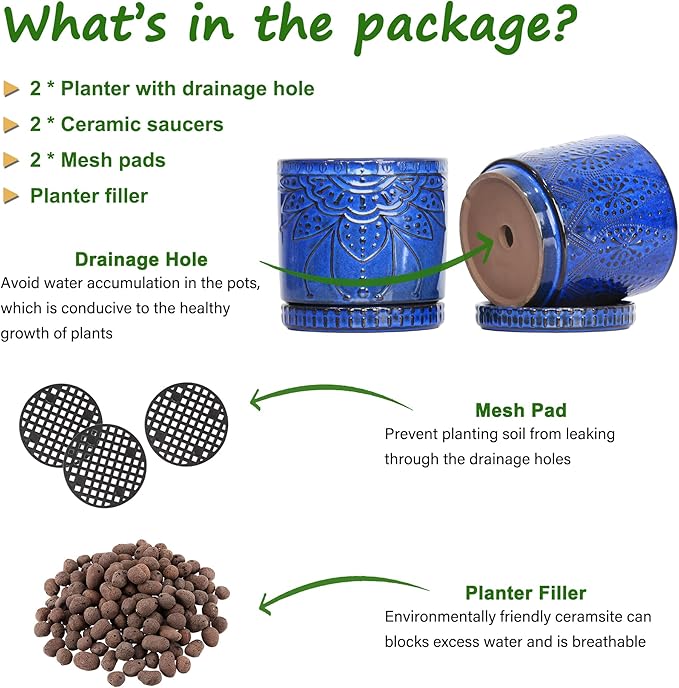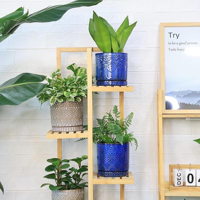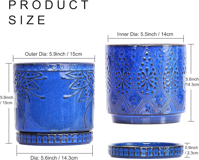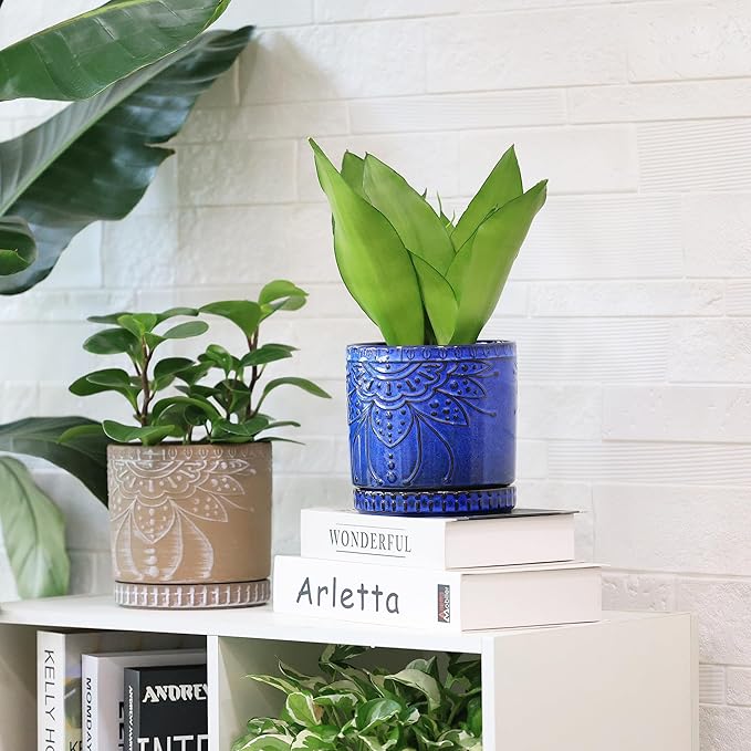 Ceramic Pots for Indoor Plants with Drainage Holes and Saucers, Ceramic Planter for Plants, Flower Pot - Set of 2