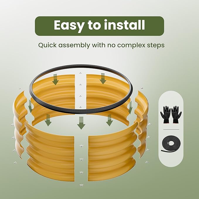 ZXZYHFTY Round Galvanized Raised Garden Bed kit,Yellow Outdoor Garden Raised Planter Box, Round Large Metal Raised Garden Beds for Vegetable 2 * 2 * 1ft 1 Pack
