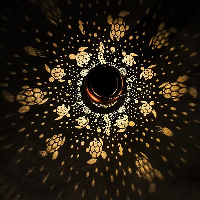- 【Perfect Garden Decorations】Sea Turtle solar lantern can project unique and beautiful patterns in a dim environment,creating a gorgeous and warm atmosphere to bring life and fun to your garden and attract your family or friends.The unique hollow out design and beautiful antique bronze color give it an artistic touch,perfect for decorating gardens,backyards,corners,Outside,sidewalks and many other scenes