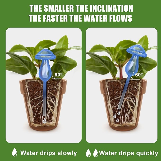 - 【Improve Plant Wellness】Self watering globes automatically distribute water to your plants if the soil gets dry,help plants maintain water and nutrition while you're away. The soil slowly absorbs water from the globe and the water will stop flowing once it's saturated watering system.