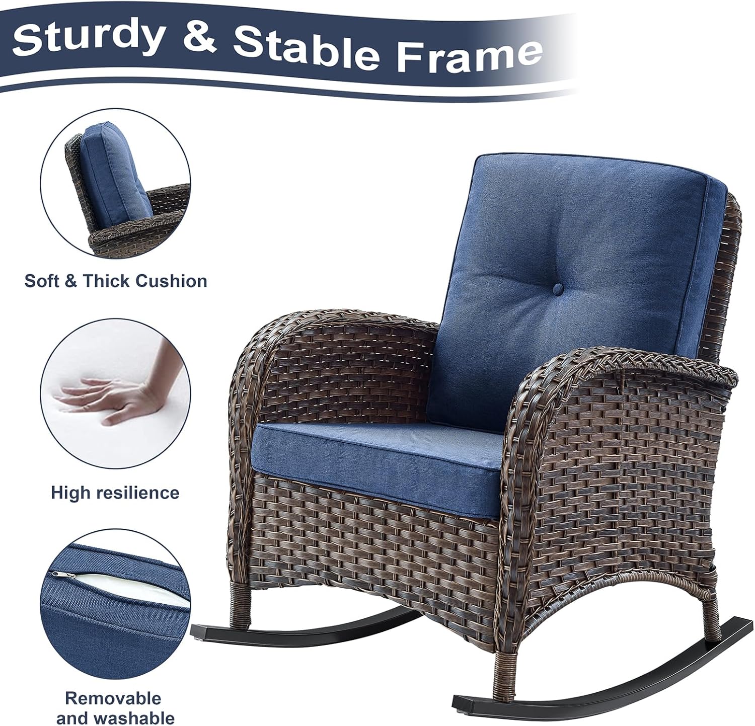 - Swivel Rocking Chairs:Resting on chairs with sturdy round metal base allows to glide gently and swivel 360° for relaxing, with seat and back cushions contribute to comfortable support, making the outdoor set a perfect addition to transform your patio.
