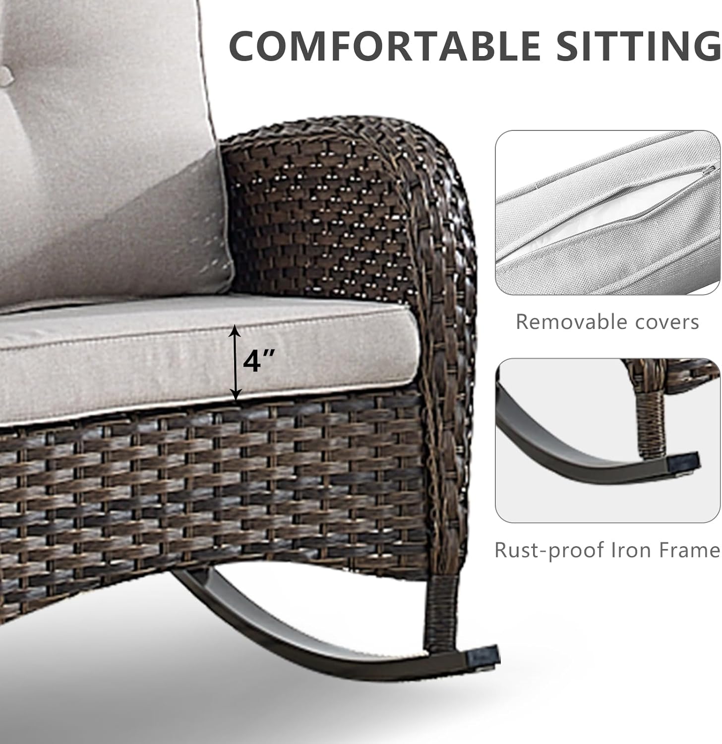 HUMMUH 5-Piece Outdoor Patio Furniture PE Wicker Patio Conversation Set,All-Weather Outdoor Rocking Chairs with Patio Couch Tables for Backyard,Poolside,Deck