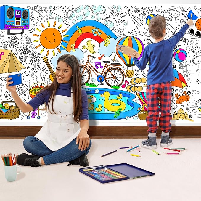 - Summer Fun Unleashed: Dive into our SUMMER-themed giant coloring banner, great for days when the sun is too strong. Featuring sun, bicycles, and rainbows, it promises hours of entertainment. Personalize with summer drawings, bringing seasonal joy indoors.