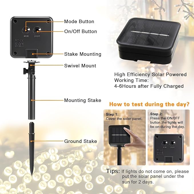 - 【IP65 Waterproof & Excellent After Sale Service】Solar string lights outdoor waterproof have IP65 waterproof rating and can withstand severe weather. If you are not satisfied with your purchase, please contact us. We will reply you within 24 hours and deal with it until you are satisfied.