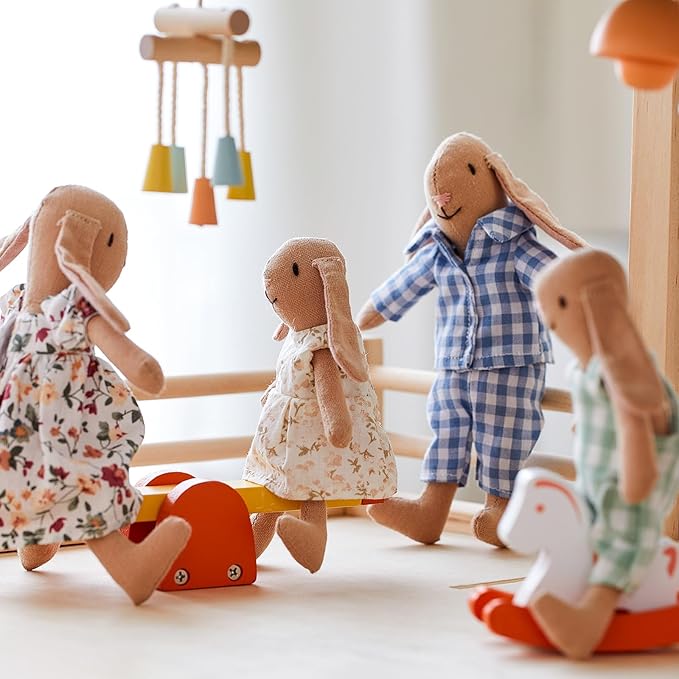 - 【Bunny Family Set】Bunny dolls include dad, mom, son and daughter. All our Bunny feature delightful detail from nose to tail. Each bunny friend is full of personality. Some are fun, some are cute, some are cool, it's up to you! Different themes bring endless adventures for our little ones