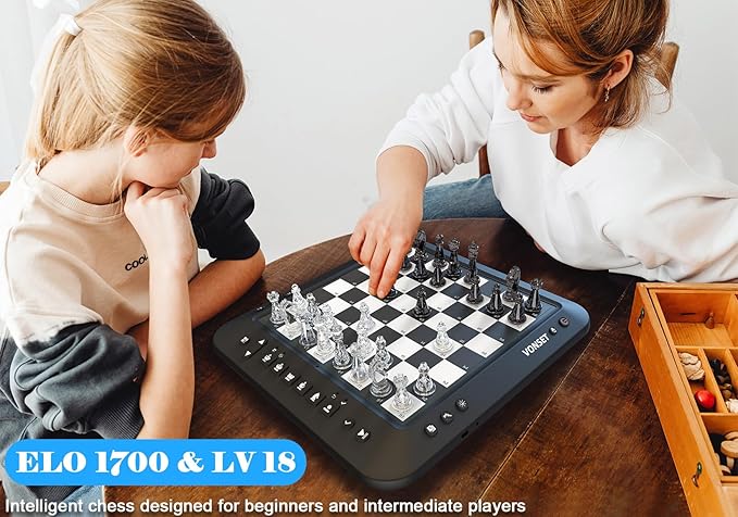 - Electronic Chess Board: Built-in AI intelligent algorithms, with 1-18 levels for beginners to intermediate players. Play against the computer or a friend, and challenge yourself anytime. The P6 Chess Computer supports up to 1700 ELO.