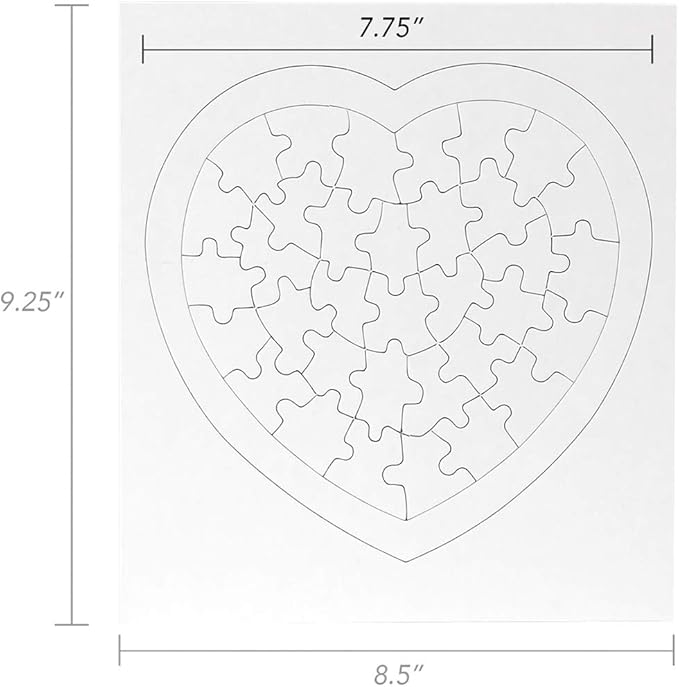 - CUSTOMIZABLE HEART-SHAPED PUZZLES: Each 8.5 x 9.5-inch blank white puzzle provides the perfect canvas for creativity. Ideal for drawing, painting, or writing to create a truly personalized masterpiece