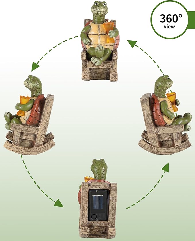 - 🍹 Glowing Cup Feature: At night, watch as the turtle’s cup magically lights up, creating a whimsical ambiance in your outdoor space.