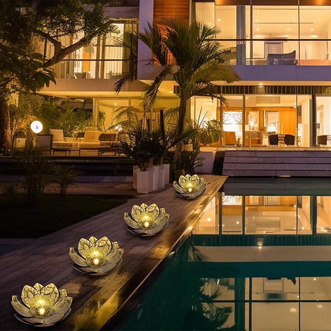 - 【Advanced Outdoor Patio Garden Decor】: Multifunctional and decorative, our Lotus decoration Outdoor solar lights serve a wide range of outdoor settings. Perfect for garden and front porch decoration, balcony and deck embellishment, as well as outdoor tabletops decor, swimming pools decor, flower beds decor, lawns decor, floor decor, fences decor, landscape paths decor, walkways decor, restaurant gardens decor, patios decor, porch decor and more. Elevate your yard's atmosphere with our charming solar patio light decorations. at the same time creates the perfect atmosphere for your whole family.