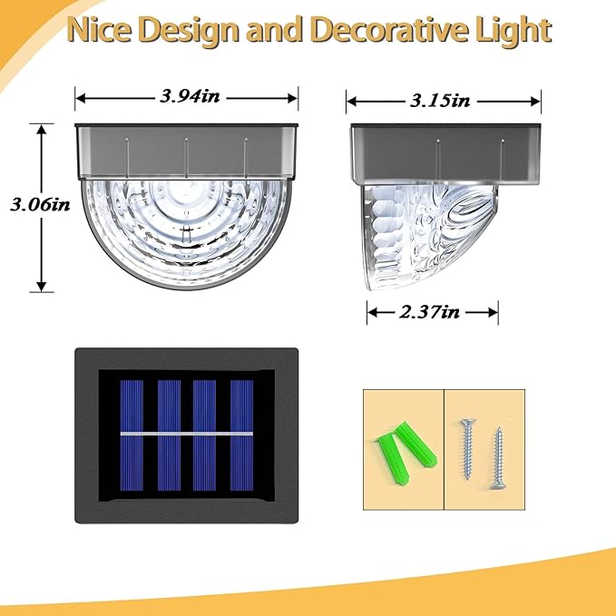 - 【High Quality】The materials of these fence lights are all high-quality ABS plastic, IP55 waterproof. These solar lights for fence can cope with a variety of natural weather, rain, snow, strong wind, etc. (Winter Tips: In a low temperature environment, the working efficiency of solar energy will be reduced.)