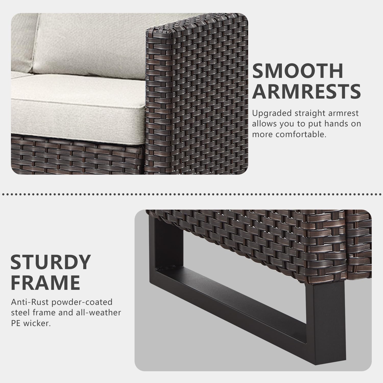 - Deep-seating Design:The Deep-sitting chairs with long and wide armrests, ergonomic backrest, matched with comfortable 4-inch thick sponge-padded cushions,The cushions offers good resilience, not easy to deform or slide, also protect your lumbar and offer a comfortable sitting experience.