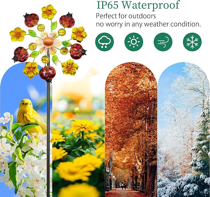 - 【Satisfied customer service】We sincerely hope that our solar wind spinner can illuminate your garden and bring visual enjoyment to your family. If you have any questions, please feel free to contact us.