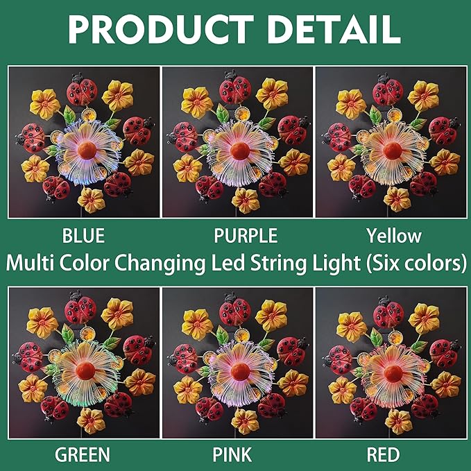 - 【RGB Transform Lighting】As night falls, colorful LED lights shimmer with a soft gem like glow, and bright metal and RGB transformation lighting create a visual enjoyment in the garden. Let you relax in the sunny porch or yard and eliminate fatigue throughout the day.