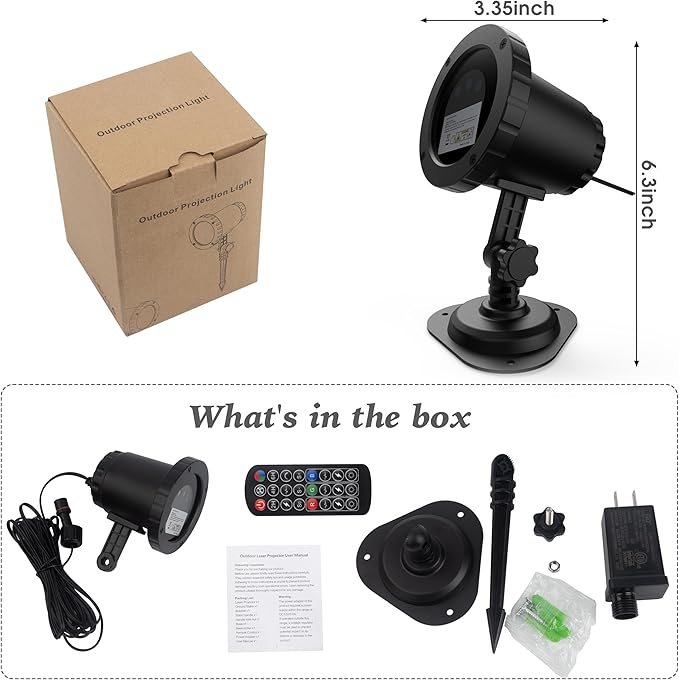 - 【Larger Projection Area】- Compared with most indoor star projector lights on the market, our projector lights have a larger projection area and can cover your garden or the entire exterior wall of your house. The farther the distance, the larger the projected area.