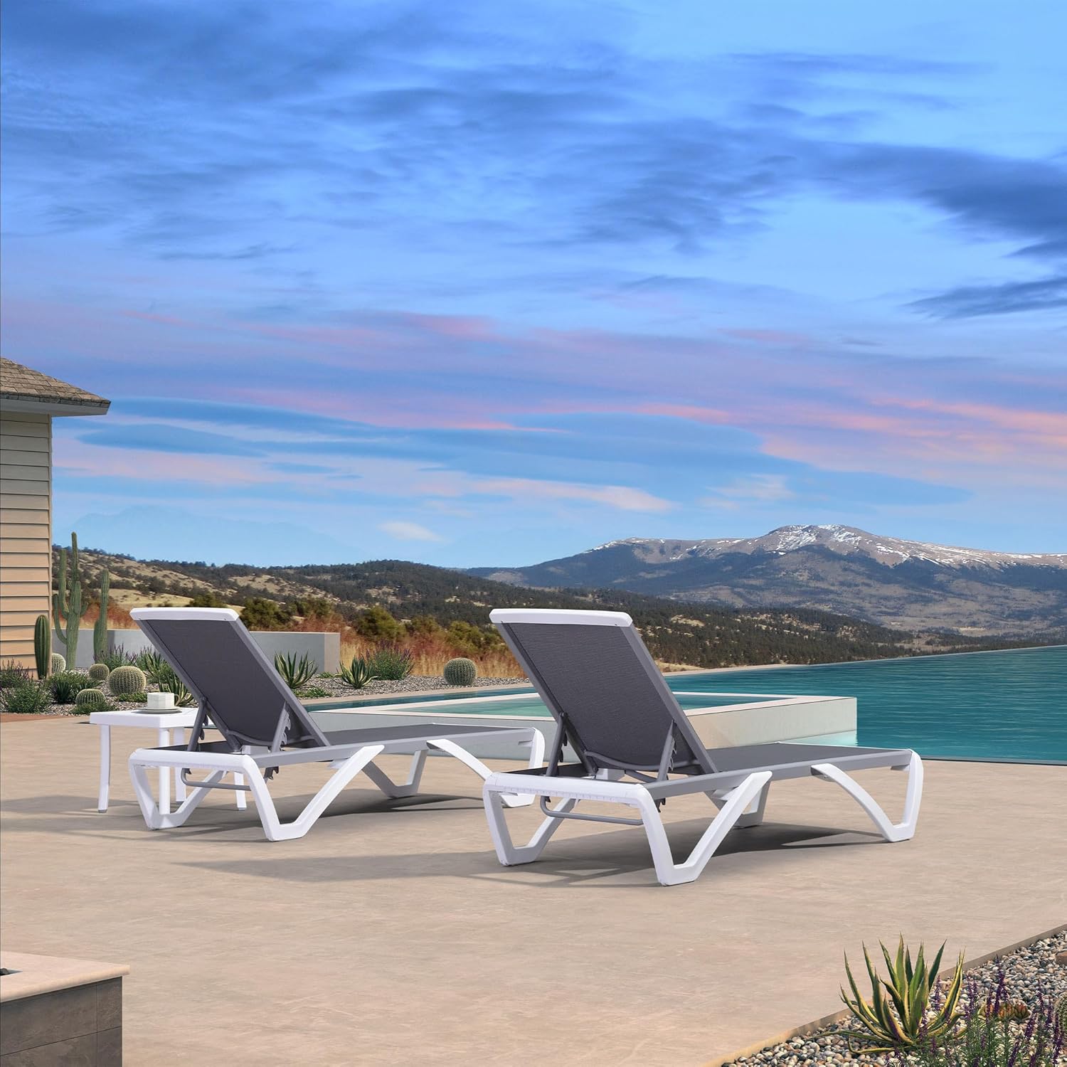 PURPLE LEAF Patio Chaise Lounge Chair Set of 3 Outside Aluminum Plastic Stackable Tanning Chairs for Pool Sunbathing Beach Deck Outdoor Lounger, Grey