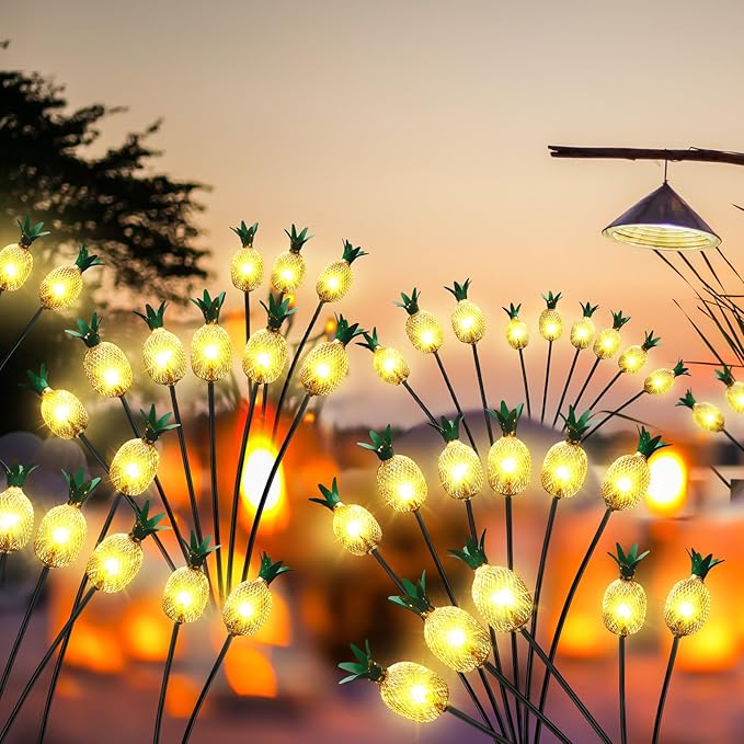 - 4 Sets Pineapple Patio Decorations: the set includes 4 pineapple shaped solar stake lights, each with 6 light heads inserted into the ground, emitting yellow colors, making your ideal decoration for the holidays bright and lively